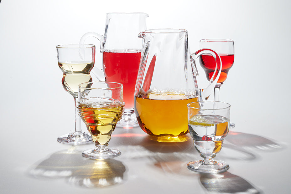 Envisioned and executed by master glassmaker Stewart Hearn of London Glassworks, this exclusive collection of Philip Webb inspired glassware will bring artisanal flair to your hosting tablescape.