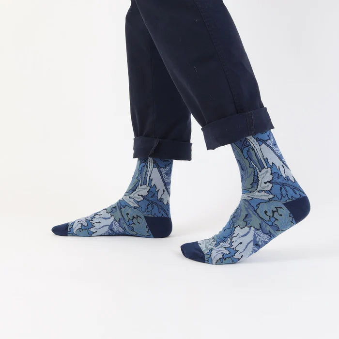 Luxurious cotton-blend socks featuring William Morris's Acanthus design. Handmade in Wales by Corgi, and created in collaboration with the William Morris Gallery, they are a modern day fusion of beautiful design and the finest traditions of British manufacturing.