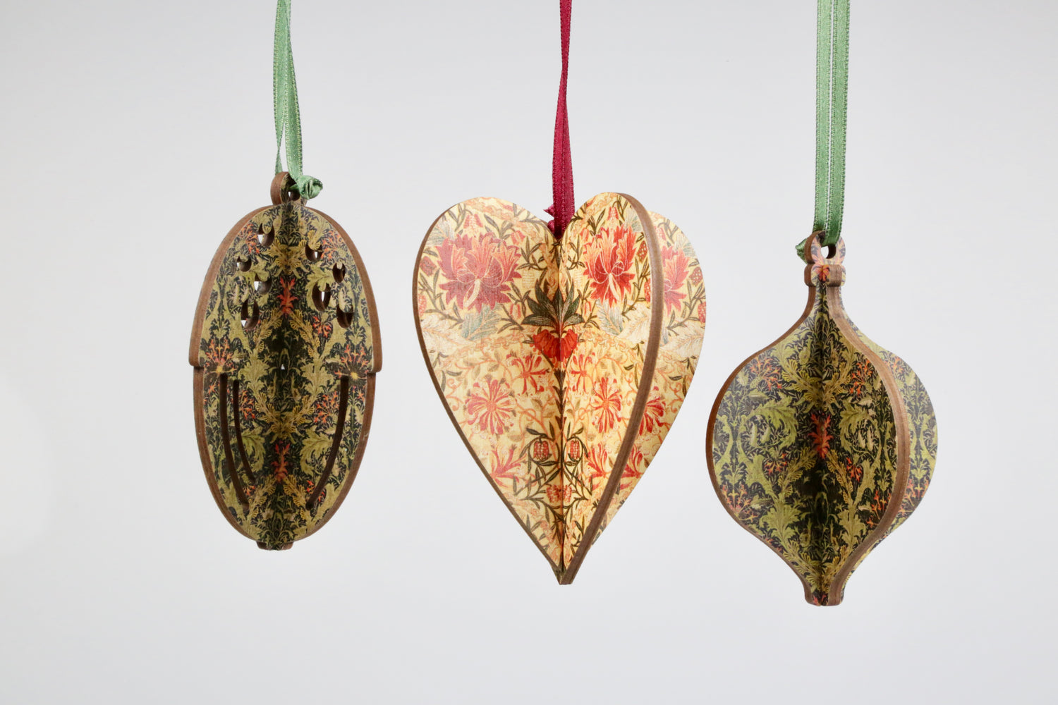 William Morris Gallery presents a stunning collection of wooden laser-cut 3D tree decorations, inspired by rare archival wallpaper, textile, and embroidery designs from the entire Morris family.