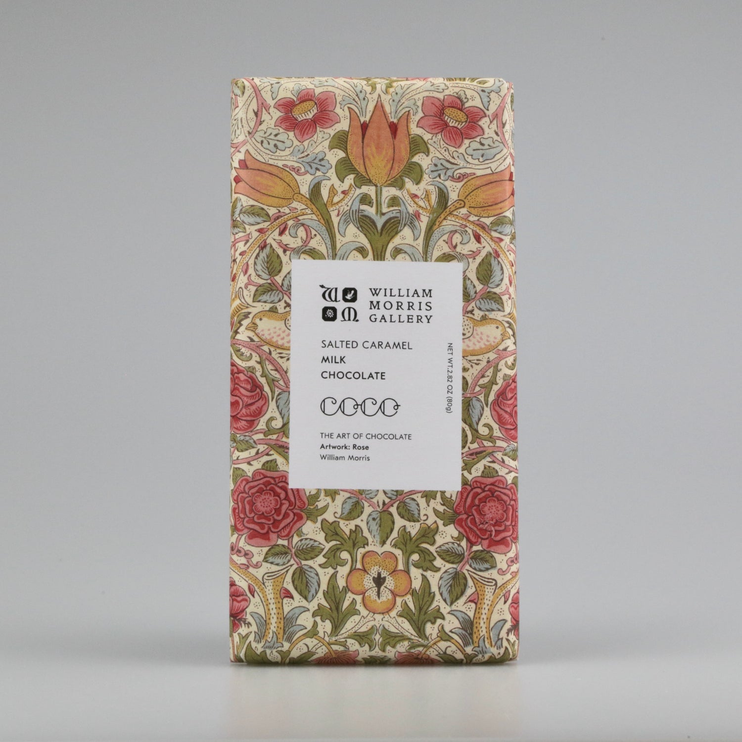 The beautiful outer packaging features a timeless William Morris Rose design, making this chocolate bar a beautiful treat to give or keep.