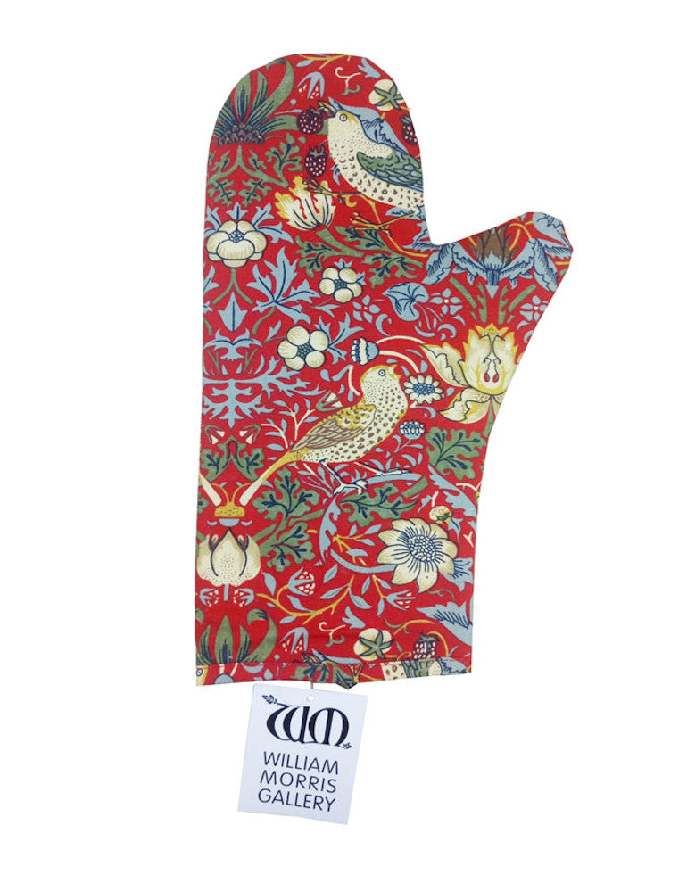 Finished in Morris's iconic Strawberry Thief print with a padded lining for extra protection against burns.