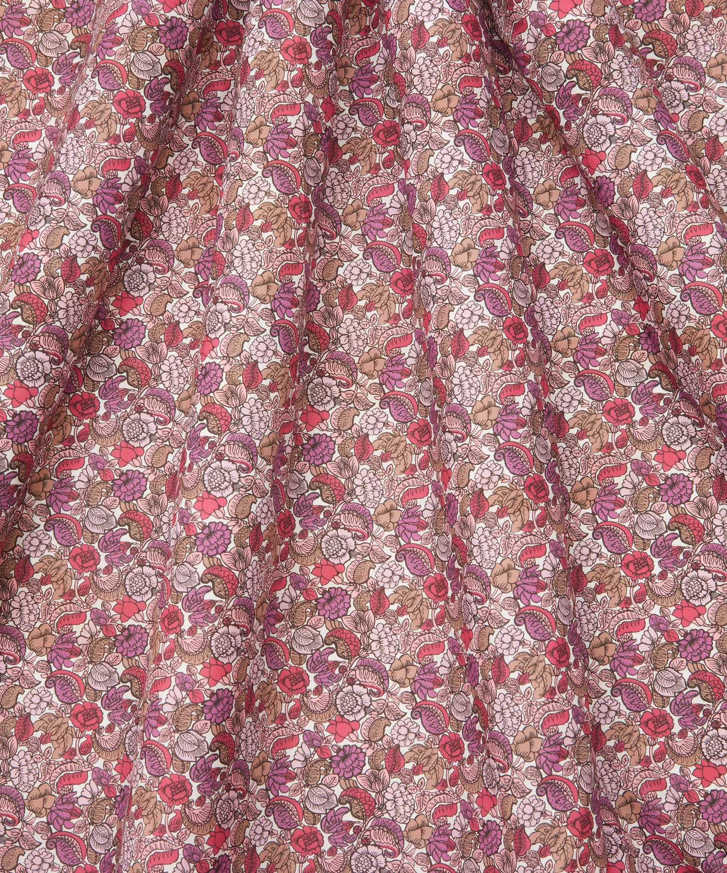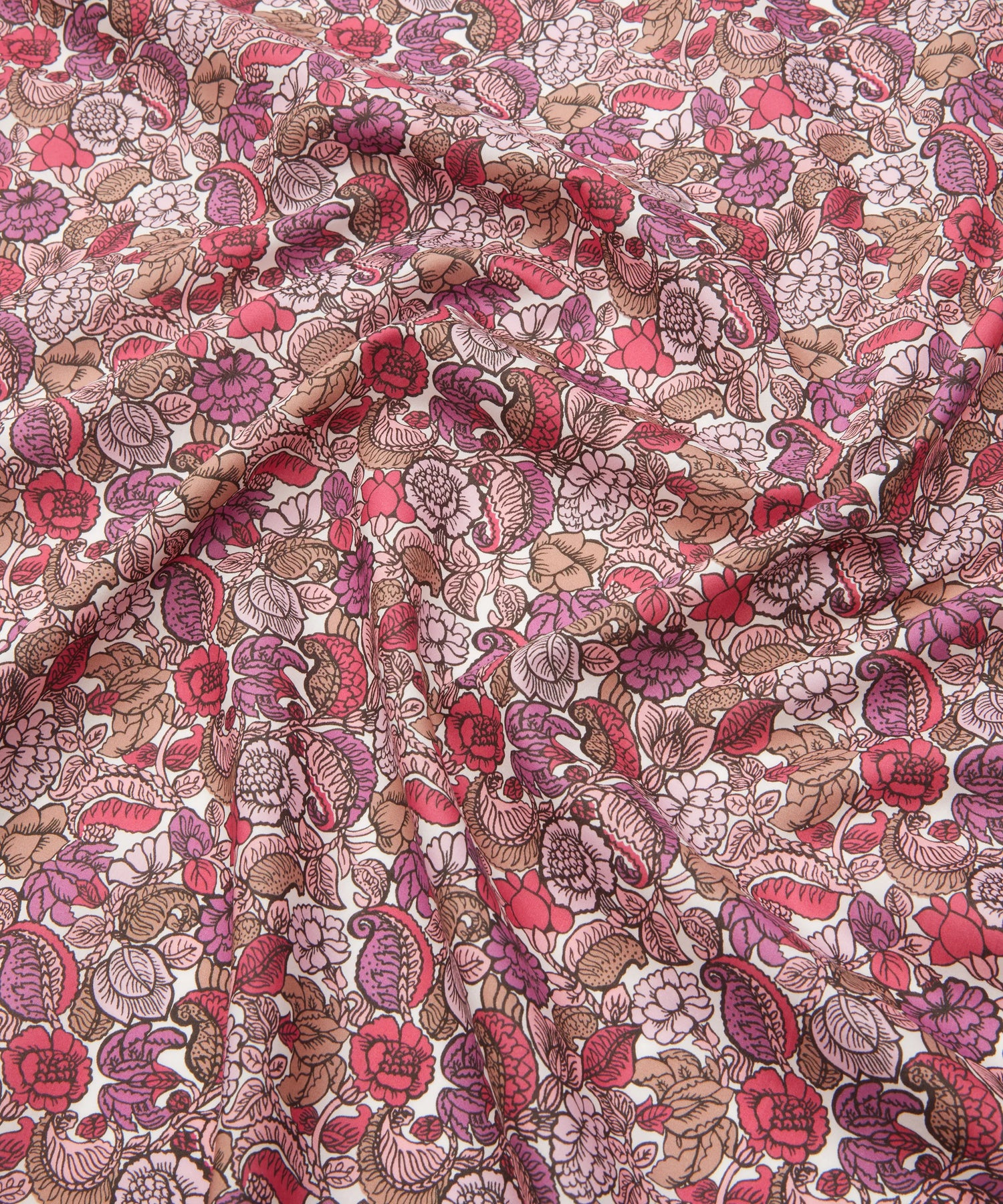 Initially created in 1950 by Suzanne Kientz, an acclaimed former Liberty designer, Kientz Floral is evocative of an Indian block print. Offering a paisley feel, this brightly hued floral design features stylised peonies, carnations, and leafy foliage.
